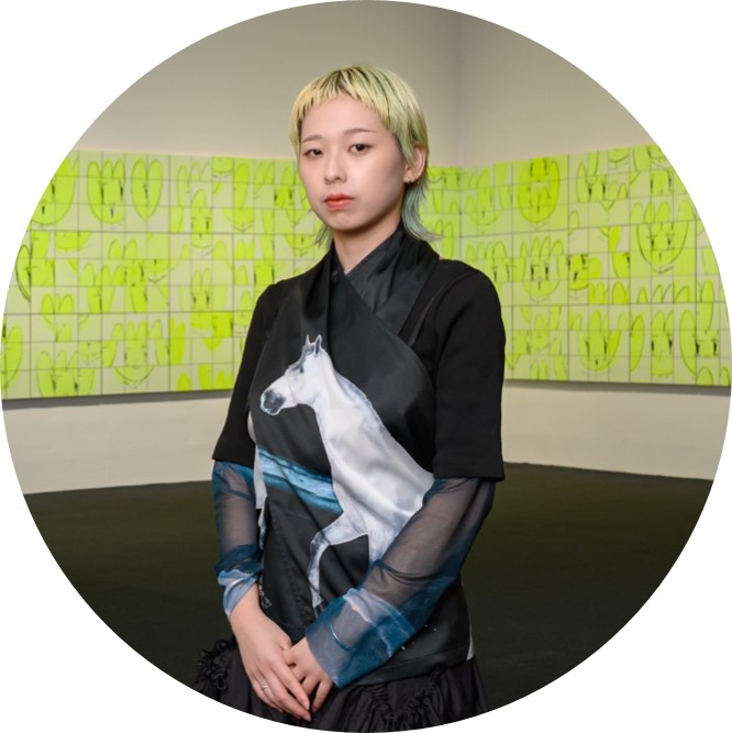 1997年出生於臺北,國立臺北藝術大學美術學系碩士。擅長以幽默與輕盈的視覺語言探索日常符號,創作關注觀看的變異性,透過拼貼、圖像錯位與材質實驗,挑戰固有認知框架解構重組,轉化為輕盈、獨特的視覺經驗。