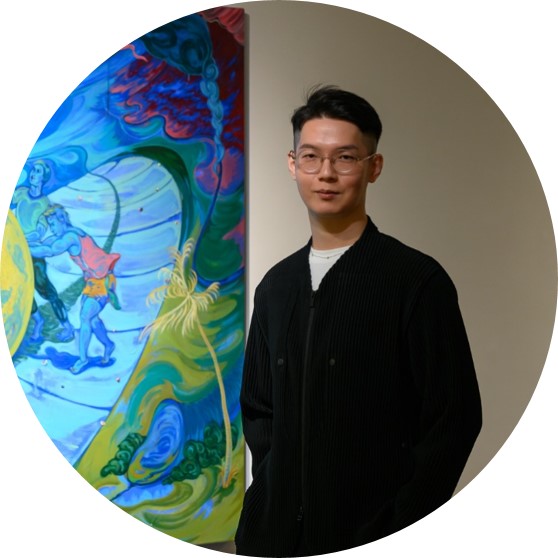 1997年生於高雄,國立臺南藝術大學造形研究所碩士,創作橫跨繪畫、聲音、雕塑與裝置。他的作品關注「生活物件與經驗載體」的關係,將記憶、氣味與感官轉化為圖像的片段,邀請觀者在凝視中重新編織經驗。