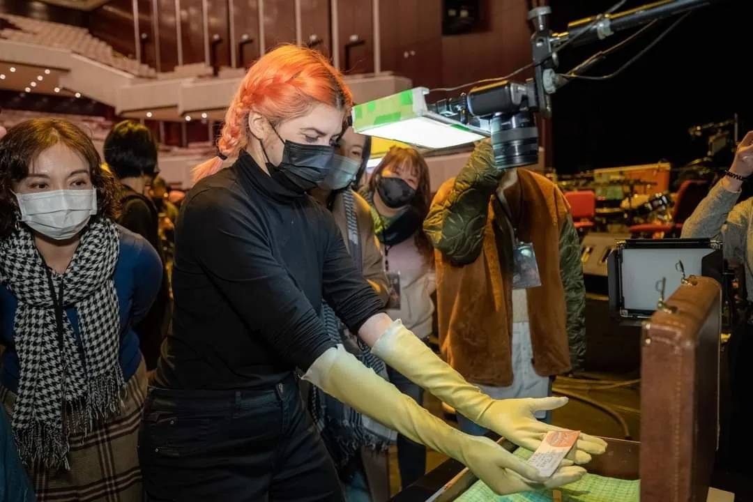 精彩演出總是讓人意猶未盡,加拿大 DJ 無尾熊小子與劇組團隊們奉上演後彩蛋親自導覽,帶著中信文教會員直擊全舞台,與大家分享演出的花絮和秘辛,不論成人小孩都睜大雙眼驚呼連連;每一處做工皆精細繁複,製偶師除了依據不同的畫面設計來製作對應尺寸的戲偶外,還會將磁鐵嵌入戲偶的四肢,方便做出更多樣的關節動作,例如:搖晃鐵製的小電風扇;牽動頭部跟身體的開關往往是分開的,因此操偶師的手指要非常靈活且細膩。