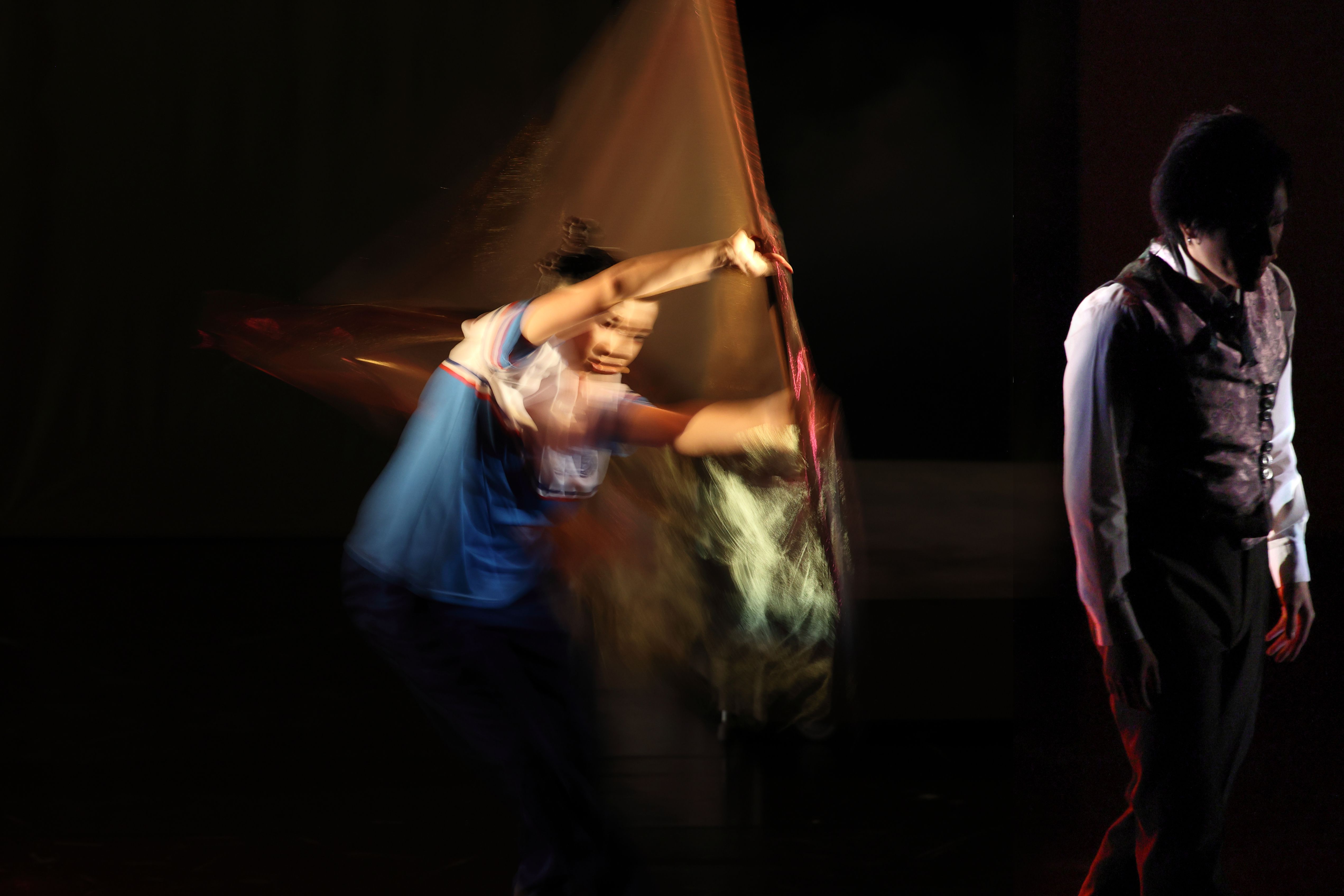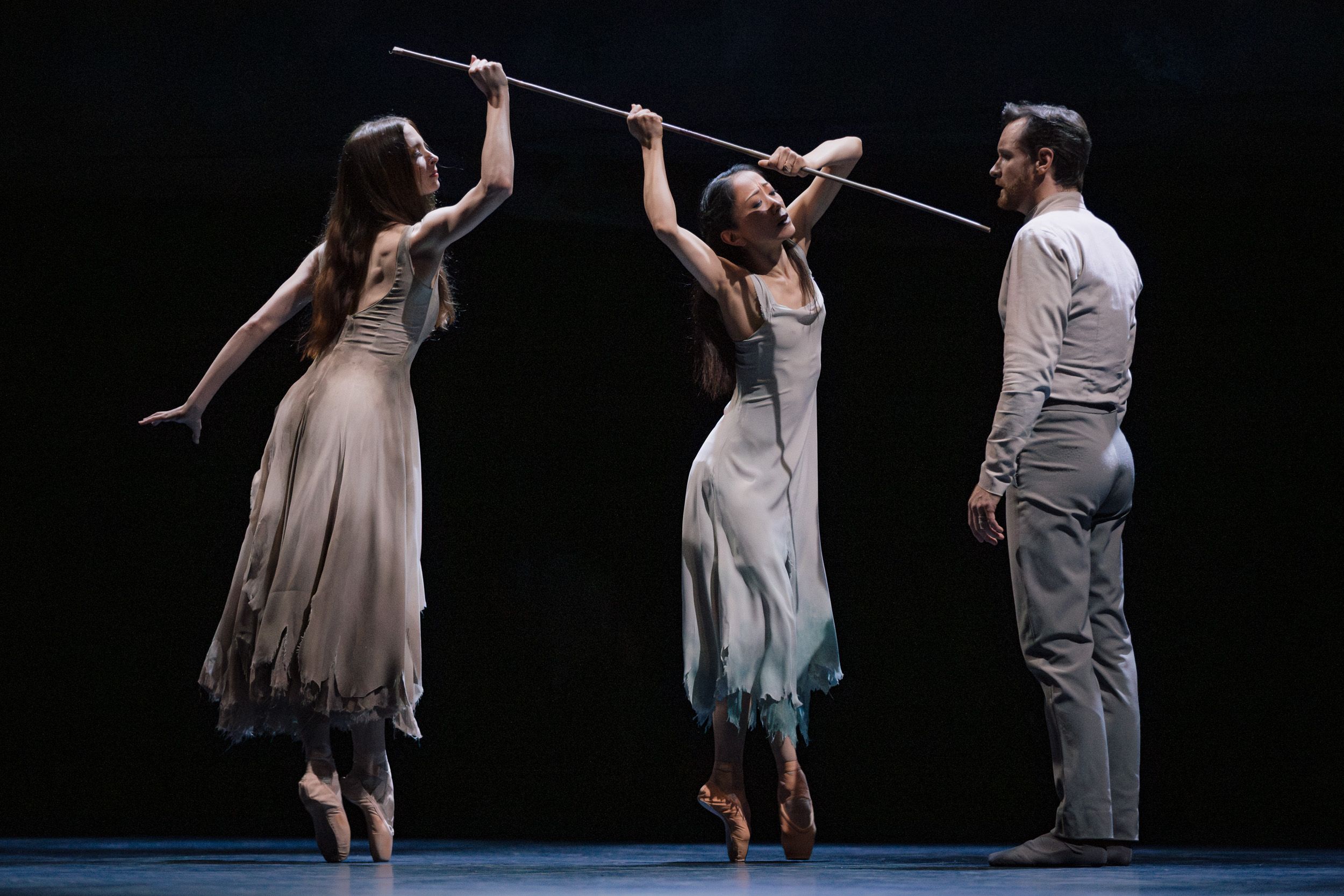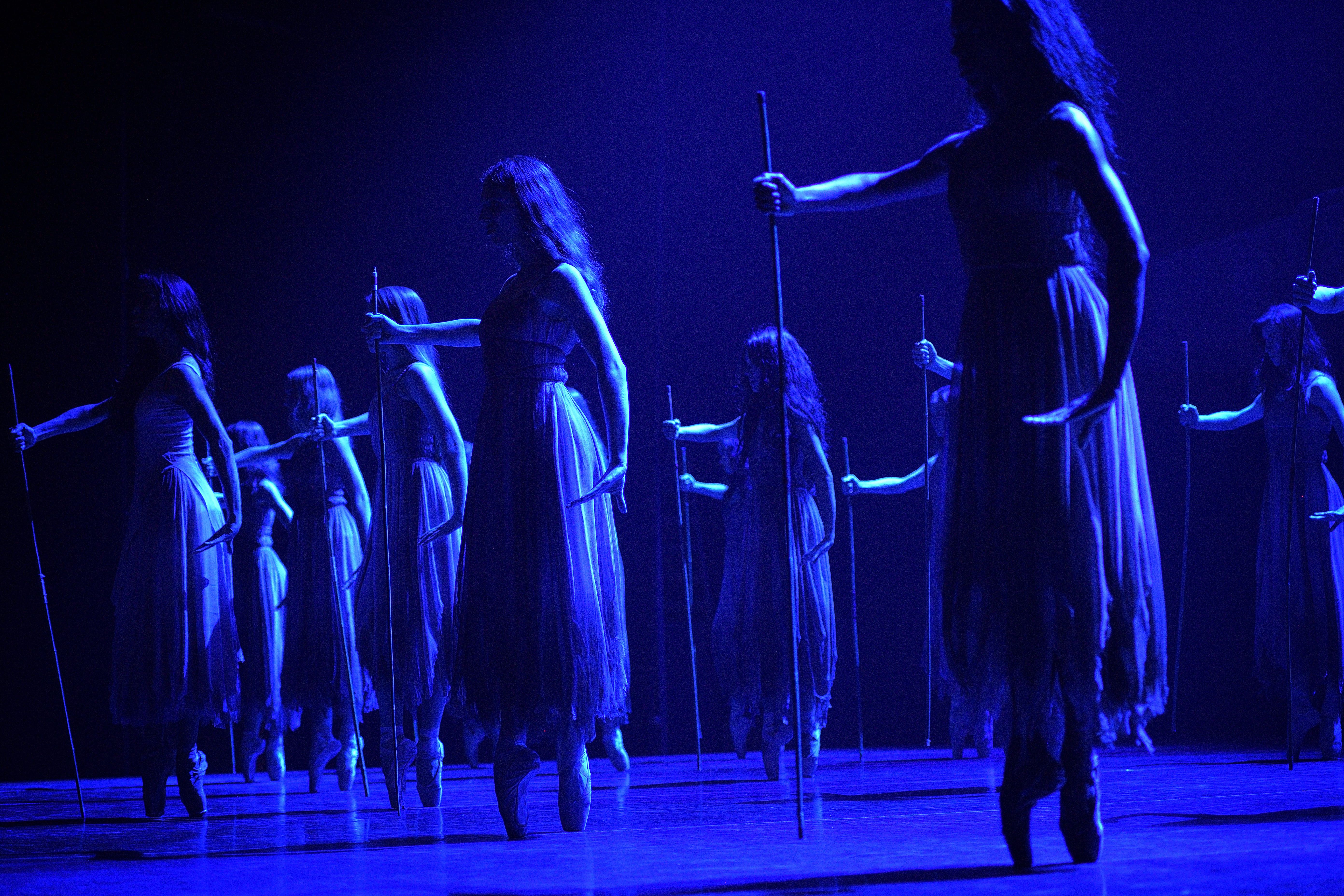 阿喀郎融合印度卡達克古典舞(kathak)腳步與芭蕾對抗地心引力的身體語彙,成為《吉賽兒》人鬼分界最大區別。上半場舞者著芭蕾軟鞋登場,得以凸顯動作的爆發力與速度感,以表現權貴階級與工廠移工的權力關係與衝突張力;到了下半場,穿上芭蕾硬鞋、踮腳向上延伸身體的女鬼,則呈現迥異於現實人間的空靈質感。特別是剛轉換身分的吉賽兒,帶著竹竿踮起腳尖,搖搖晃晃努力尋找平衡,脆弱而堅毅,呈現動人畫面,彷彿在死後世界重新適應新的身體(靈體?)。既是突入冥界的茫然,也像是擺脫人世間權力壓制,重建另一套(專屬維麗的)引力法則與宇宙秩序。