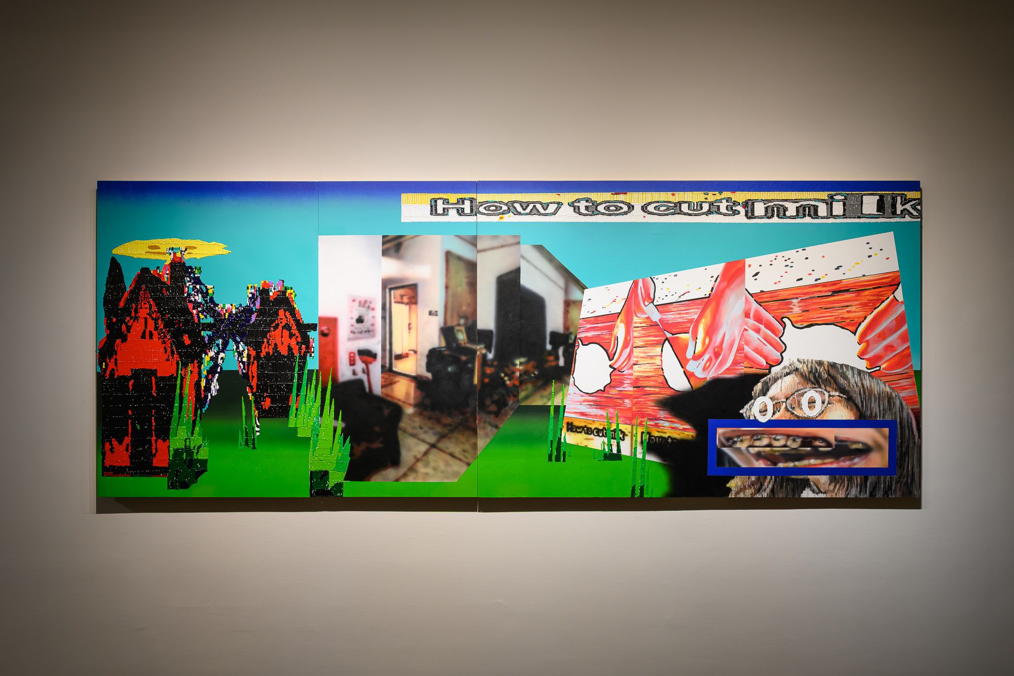 王柏欽〈新系統 Sample 6:How to Cut Milk〉作品自述節錄:作品關注當代觀看方式的演變,並探討在演算法主導下,影像如何成為被消費、被拼貼的素材,也如何在繪畫中重新獲得解釋與生成的可能。