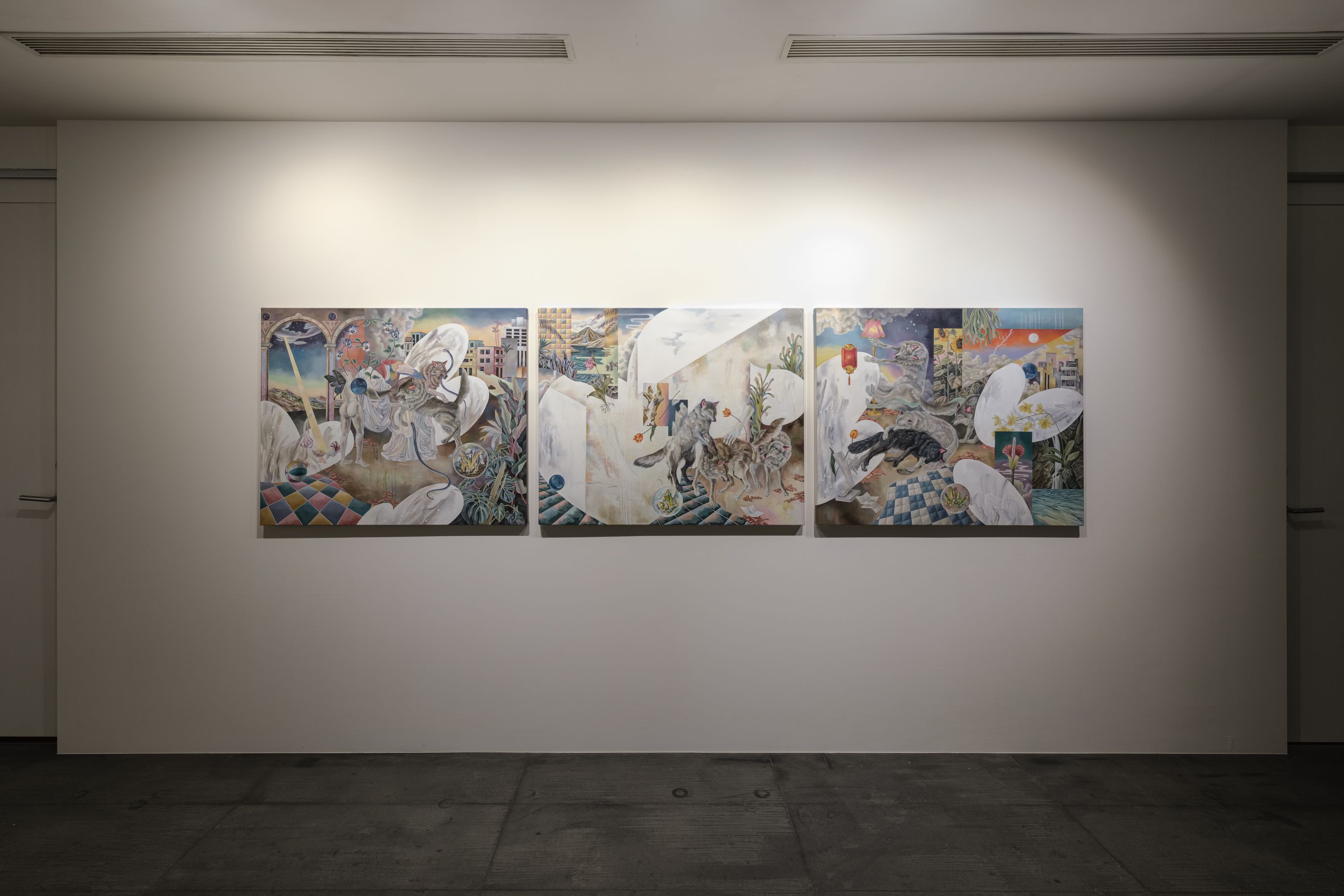 系列作品以風景、動植物為主題,傳達人類挽留生命或其他事物的欲望,透過拼貼、重組帶有寓意或文化聯想的圖像,重新賦予繪畫語境。畫面中描繪的虛幻元素,源自藝術家生活經驗,以各種人造和自然的混合物,回應著人類身處境地。