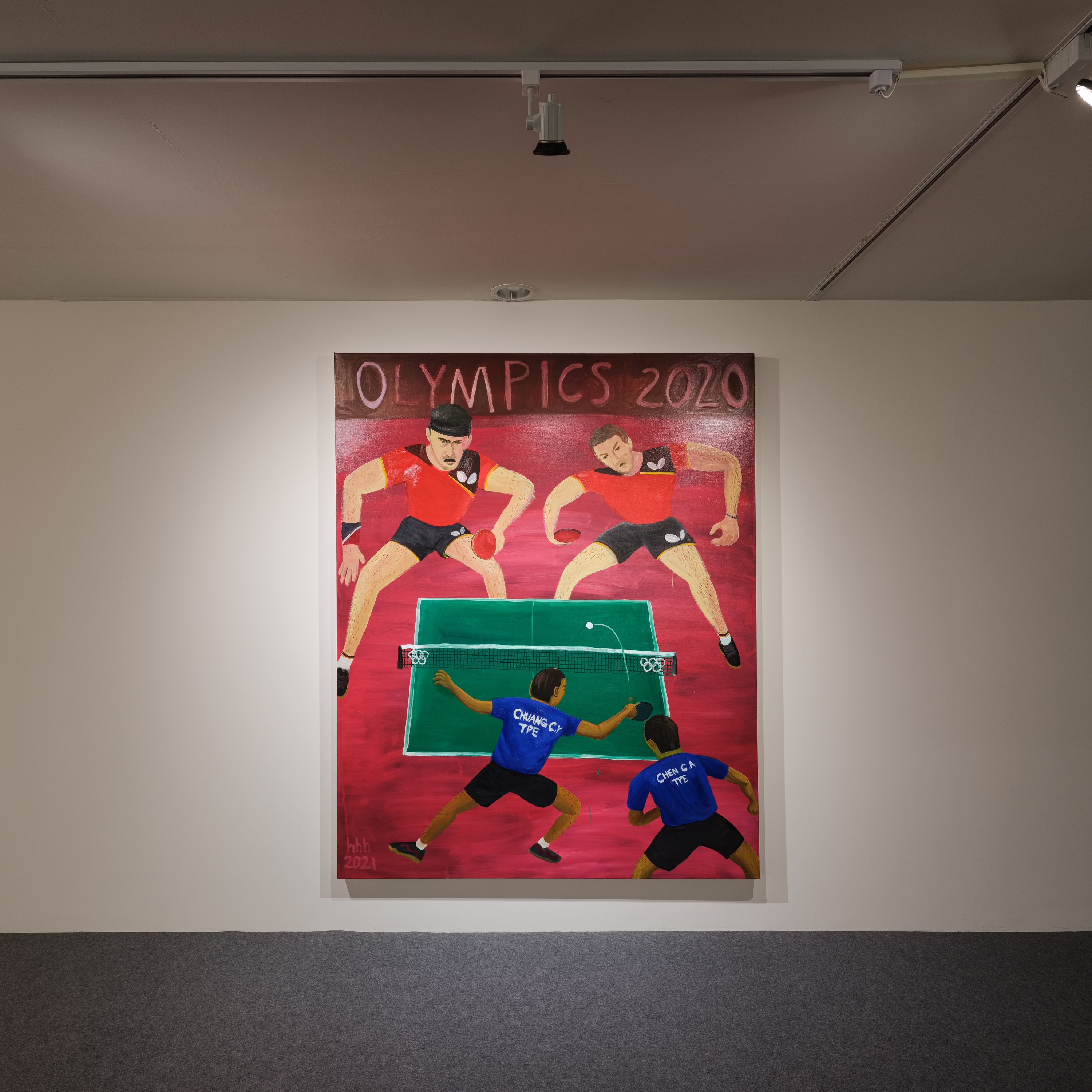 藝術家擅長擷取滑稽與尷尬的特殊時刻,聚焦各式古怪情節或戲劇氛圍;本作描述疫情期間最令人興奮又能連結彼此的全民活動─觀看奧運轉播,鏡頭帶觀眾神遊到世界另一方,在疲乏的防疫生活裡觀看運動競賽,畫面散發出膠著的焦慮感,有某種因無能為力而導致的歡愉反差。