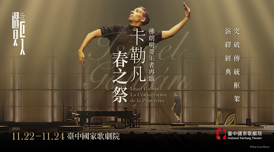 俄國作曲家史特拉汶斯基(Igor F. Stravinsky, 1882-1971)的《春之祭》原是芭蕾舞劇所譜的管絃樂曲,百年來不斷被翻演致敬;卡勒凡以佛朗明哥自由奔放的靈魂,結合當代舞蹈中的強烈情感,搭配雙鋼琴演繹經典,將緊繃、垂直的樂曲節奏連結輕鬆、流線的肢體動作,透過腳尖加入敲擊、刮擦等複雜節奏,與兩位鋼琴家對話,彷彿召喚著音樂動機中,獻祭少女狂舞致死的血腥祭典,以王者魅力主宰舞台,呈現出前所未有的《春之祭》。