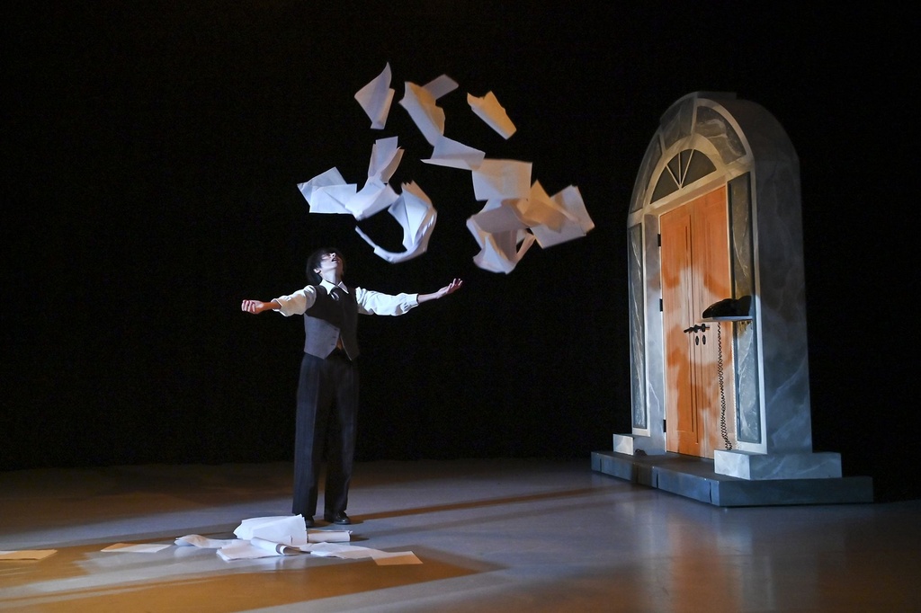 編舞家羅文瑾在卡夫卡的文學作品中,看見現代人與書中角色鏡像般的徒勞。卡夫卡筆下的恐怖,總帶著一種近乎卓別林式的荒謬,一種自我折磨般的黑色幽默,既可笑,亦無法逃脫。羅文瑾將那種『苦中作樂』的生存不安,透過荒謬舞蹈劇場表現出來。她重塑卡夫卡〈在律法門前〉等短篇,與戲劇構作陳虹均合作,建構出在診療室前、法院門前、公寓套房內三個場景的荒謬舞蹈劇場,並透過肢體與文本相互纏繞,讓每個場景所閃爍出的象徵與張力,牽動觀眾在荒謬中笑著,也在笑聲中隱隱感受到存在的重量。