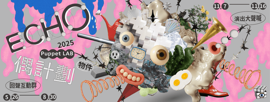 2025年飛人集社劇團主辦第一屆『ECHO偶計劃』,策劃【回音互動群】、【演出大聲喊】兩大系列活動,鎖定「物件」作為主題——聚集創作者、觀眾、偶戲愛好者、觀察者一同玩耍,其中【演出大聲喊】呈現一檔國外偶戲大師經典演出,以及兩檔國內表演者全新創作,邀請大家一起來體驗物件的無限可能!