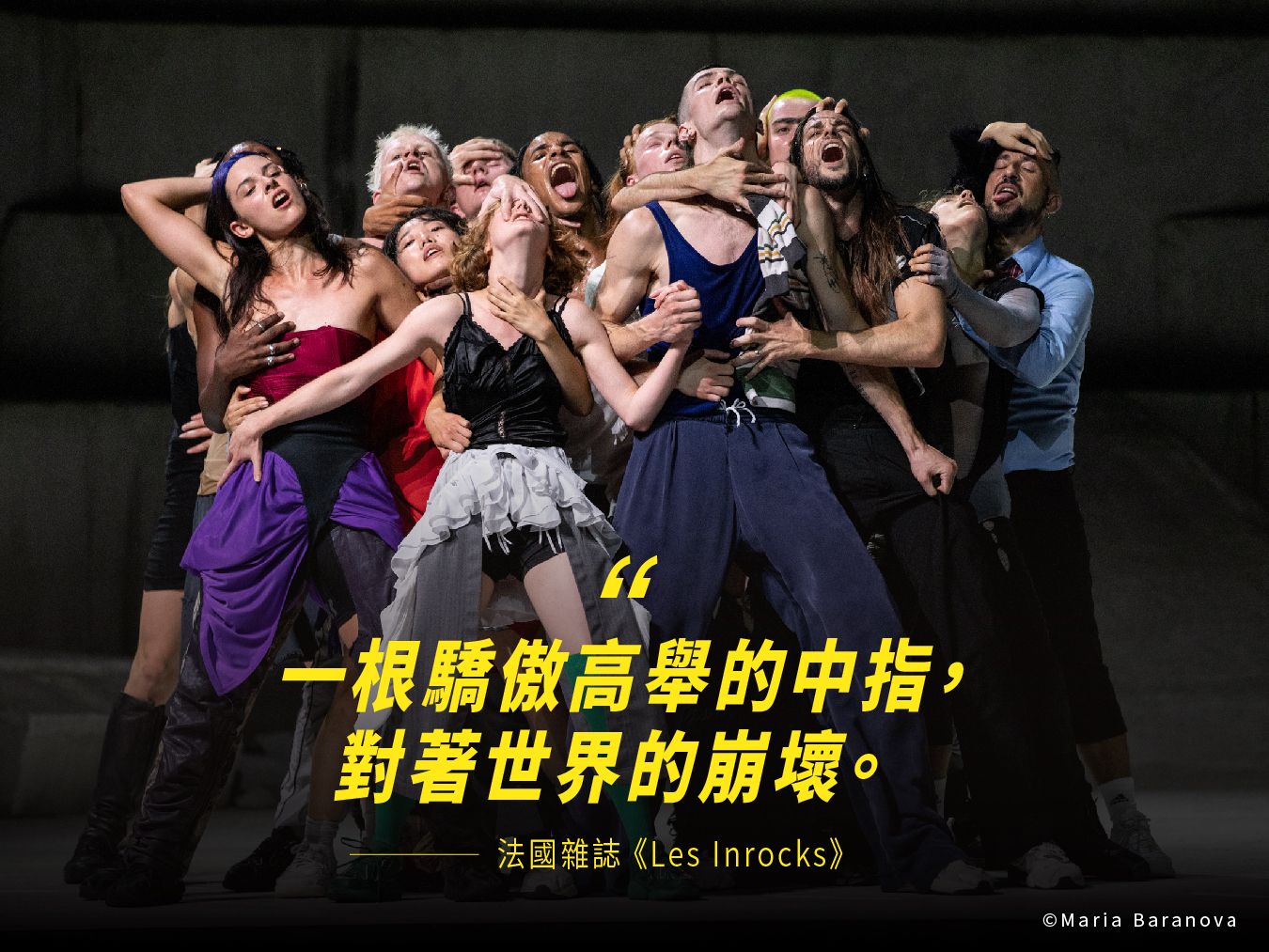 狂徒 ((LA)HORDE)於2013年由瑪琳.布魯蒂 (Marine Brutti)、喬納森.德布爾 (Jonathan Debrouwer) 與亞瑟.哈瑞爾 (Arthur Harel) 發起成立,作品以揉合性別流動、集體創作與數位文化著稱。狂徒特別關注後網路時代的身體處境,從《To Da Bone》探索網路舞蹈的躁動,到《Age of Content》剖析虛實交錯中的慾望與認同。2019年起狂徒接任馬賽國立芭蕾舞團藝術總監,以《崩世光景》(Room With A View) 打造末日景觀,結合電音與政治憤怒,將舞蹈化為對當代巨獸的激進對抗與自由吶喊。