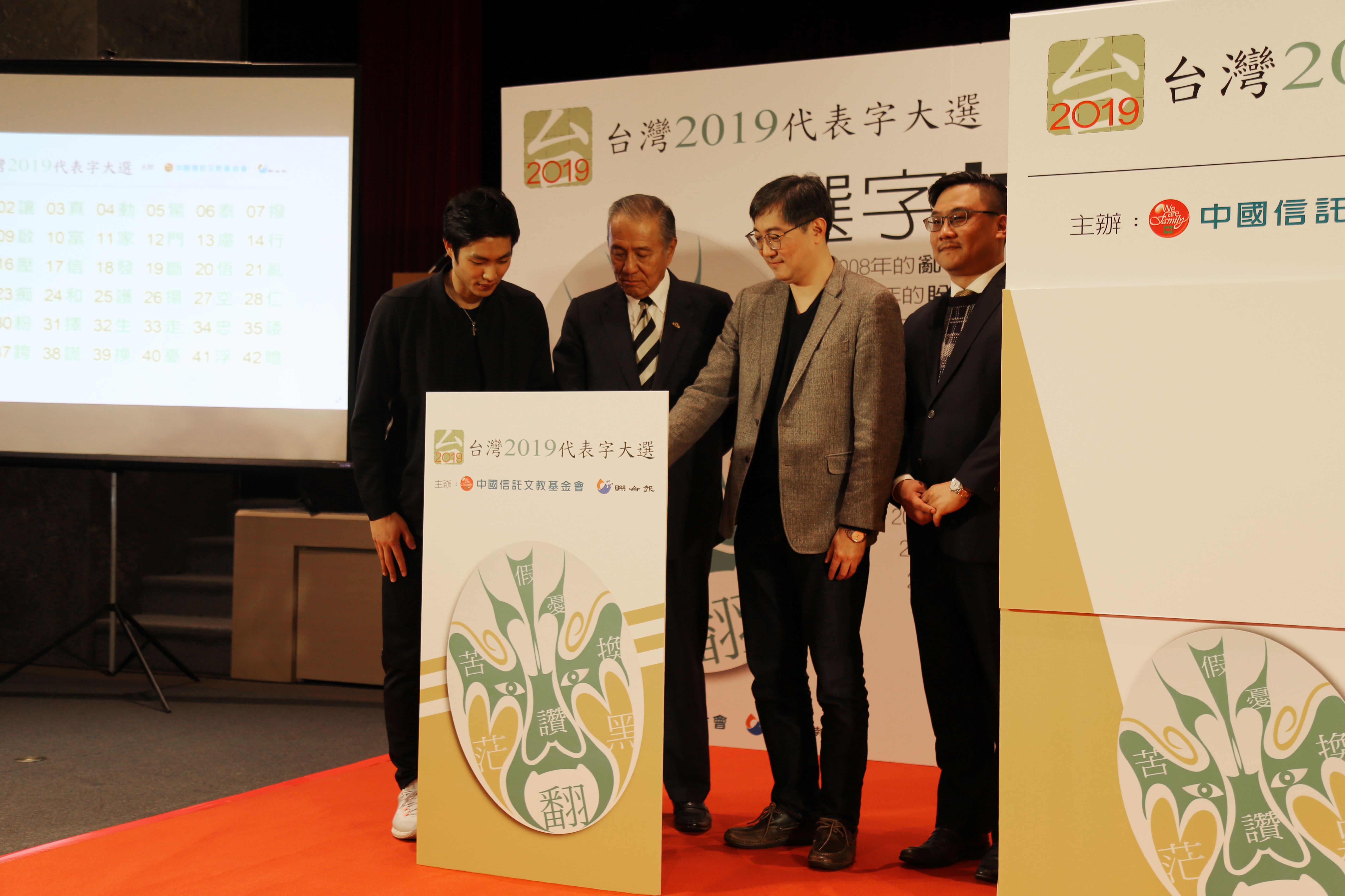 2019年度代表字票選共79,915人次投票,前10名代表字依序為:「亂」、「謊」、「憂」、「跨」、「驚」、「慮」、「啟」、「詐」、「換」、「孤」,中信文教基金會馮寄台董事長、聯合報總編輯范凌嘉及台灣羽球一哥周天成共同揭曉代表字並抽出大獎,得獎名單12/7(週六)公布於「台灣2019代表字大選」官網及中信文教基金會官網。