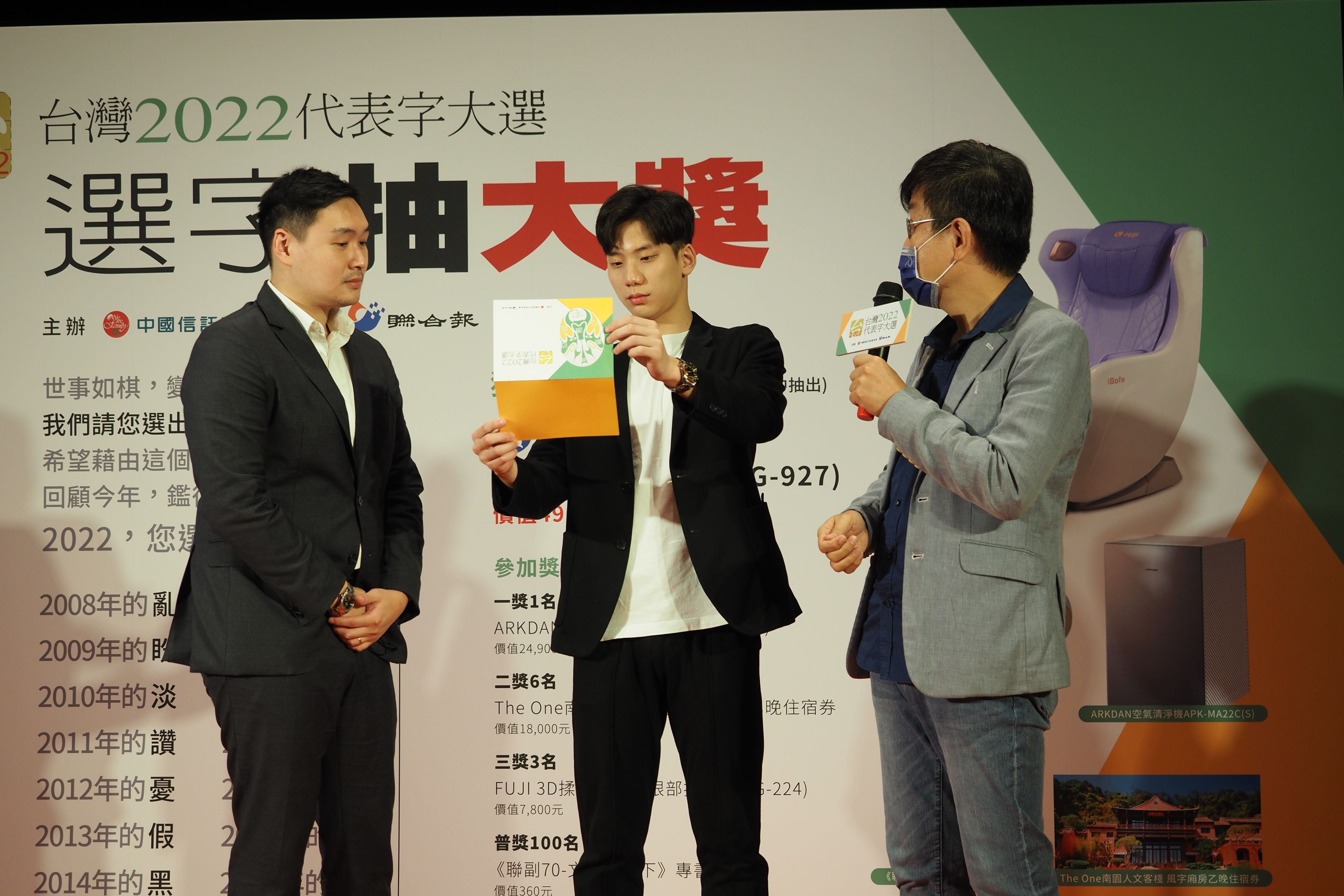記者會現場也同步抽出大獎,得獎名單將於12/8(週四)公布在「台灣2022代表字大選」官網及中國信託文教基金會官網。