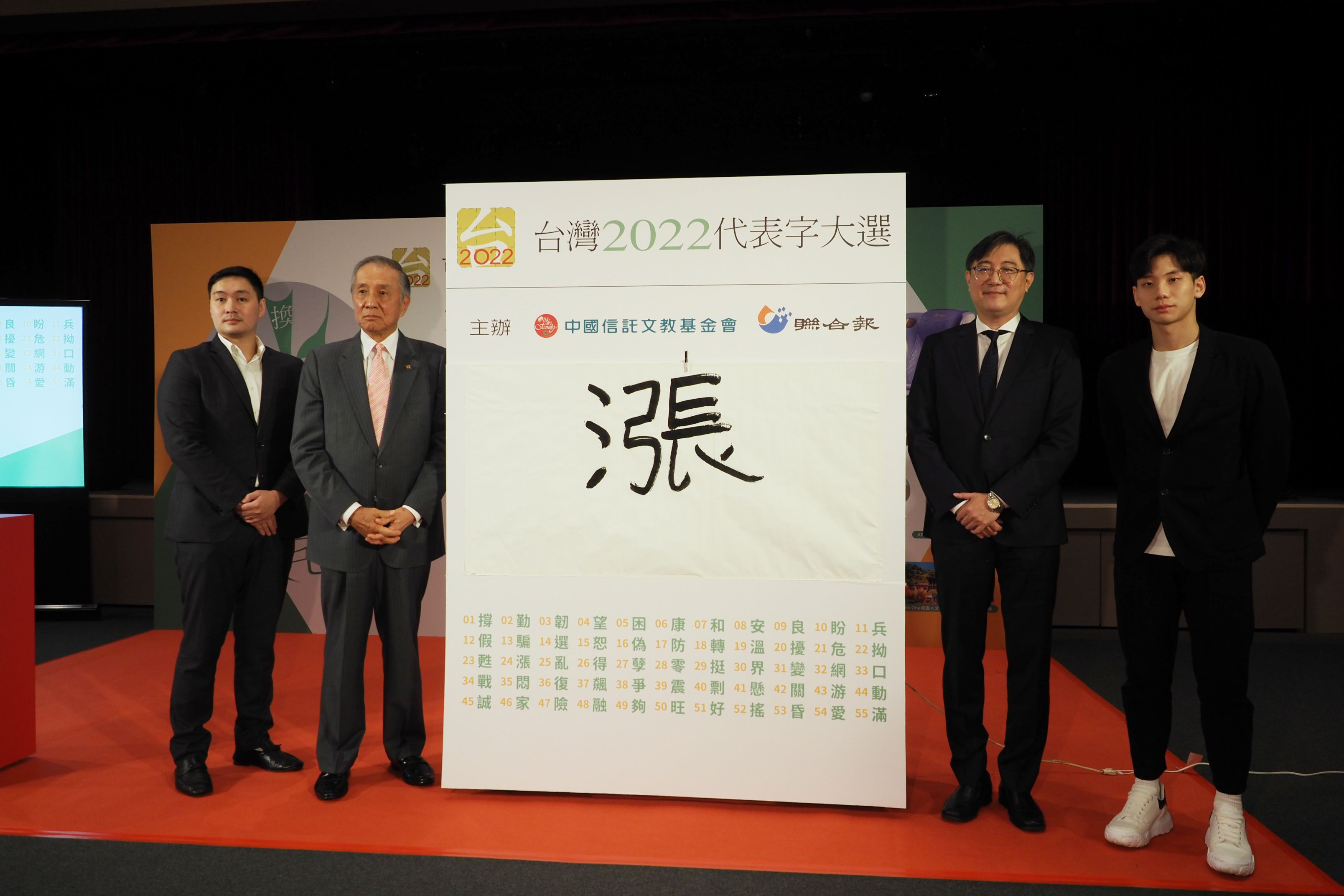 「台灣2022代表字大選」由中信文教基金會馮寄台董事長、聯合報范凌嘉總編輯以及游泳國手王冠閎共同揭曉,第一名到第十名的代表字分別為:漲、撐、騙、假、望、盼、困、亂、轉、偽。