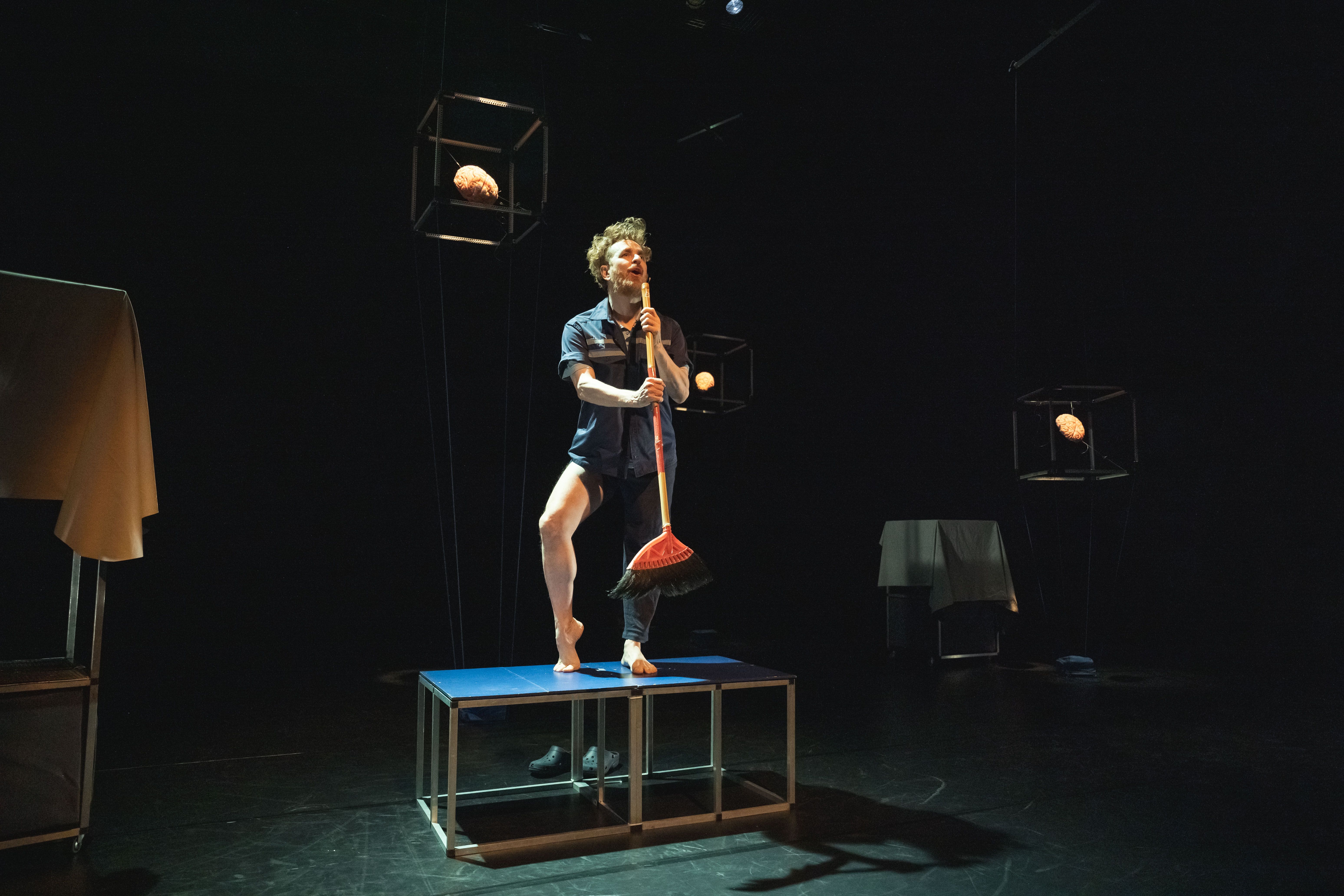 「我絕不允許任何人碰我的頭!」個性古怪的猴子名叫瑪芬,能說話、會唱歌,被分屍了照樣活蹦亂跳,身懷絕技的牠,只有一個罩門—千萬不能碰到牠頭上的晶片!荷蘭半身偶大師杜達‧派耶瓦結合舞蹈和半身偶的全新作品《布魯斯瑪莉》,講述一位退休的變裝皇后,成為超人類主義實驗室的清潔員,撞見了被反覆測試的猴子瑪芬,一場營救行動就此展開。舞臺上的派耶瓦一人分飾多角:是布魯斯,也是瑪莉,是猴子瑪芬、又是活在數位世界的法鬥犬;派耶瓦得救人、得被救,還得自己和自己鬥嘴,柔軟靈活的身段讓他與戲偶合而為一,快速切換角色和聲音,展現高超的操偶能力和深厚的脫口秀功力,一小時演出絕無冷場,故事線卻如詩般流暢。