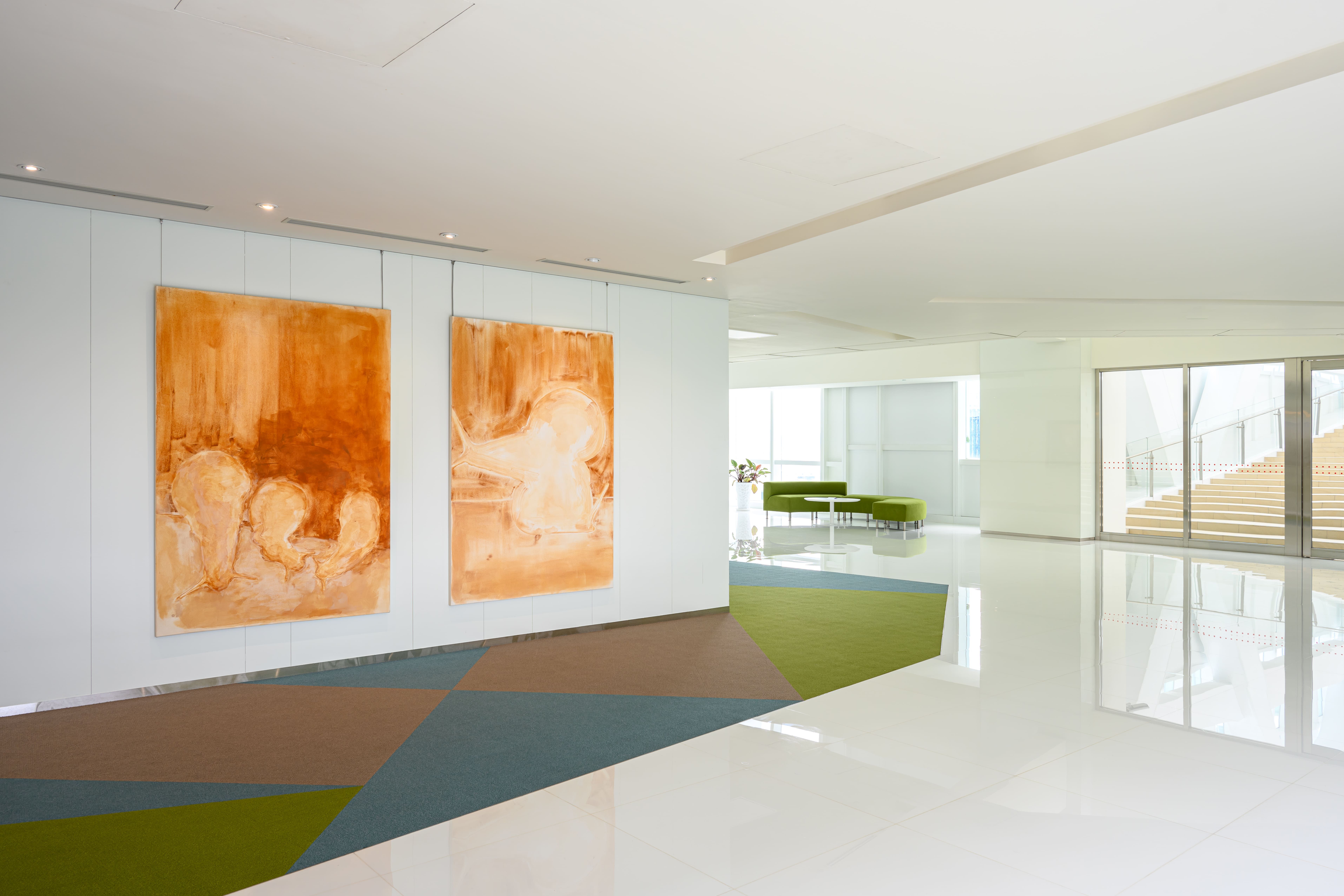 作品陳列後,中國信託也特別邀請獲獎藝術家成為首批觀眾。作品曾多次被企業典藏的藝術家蕭珮宜表示,過往都是透過照片看見作品展出模樣,第一次親赴現場欣賞典藏作品展出,感到十分開心,「覺得作品與牆面、空間的整體色調都非常協調,感受到中國信託文教基金會真的很用心。」藝術家洪瑄則表示,企業展示與一般藝術展覽存在著微妙差異,「在白盒子空間中展出時,周圍不太會有作品以外的物件出現。然而,在園區內的展示作品,則凸顯出從不同空間布局、牆面顏色及功能性需求結合後的化學變化,創造了更具互動性和生活化的體驗連結。」