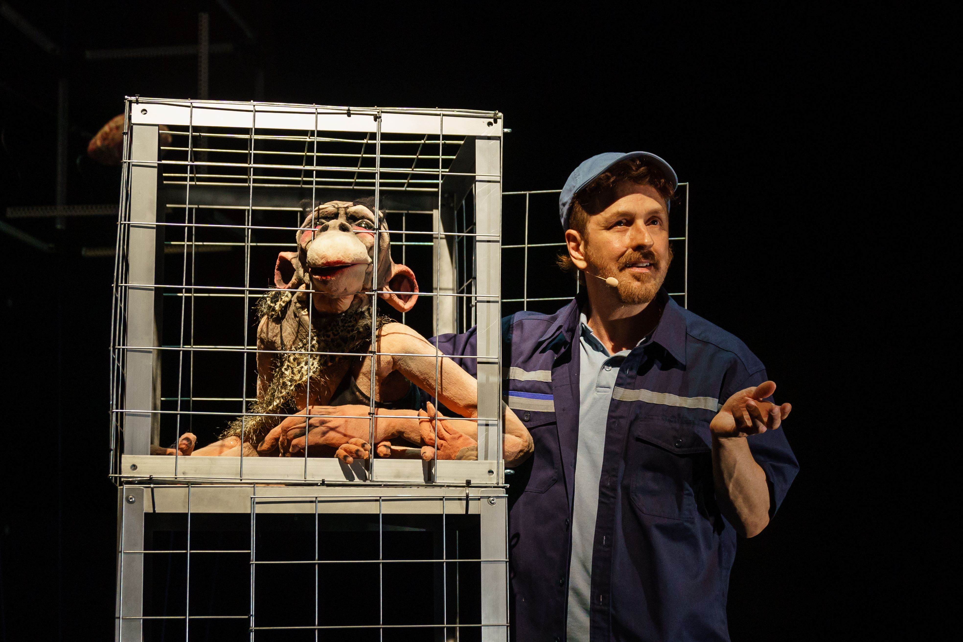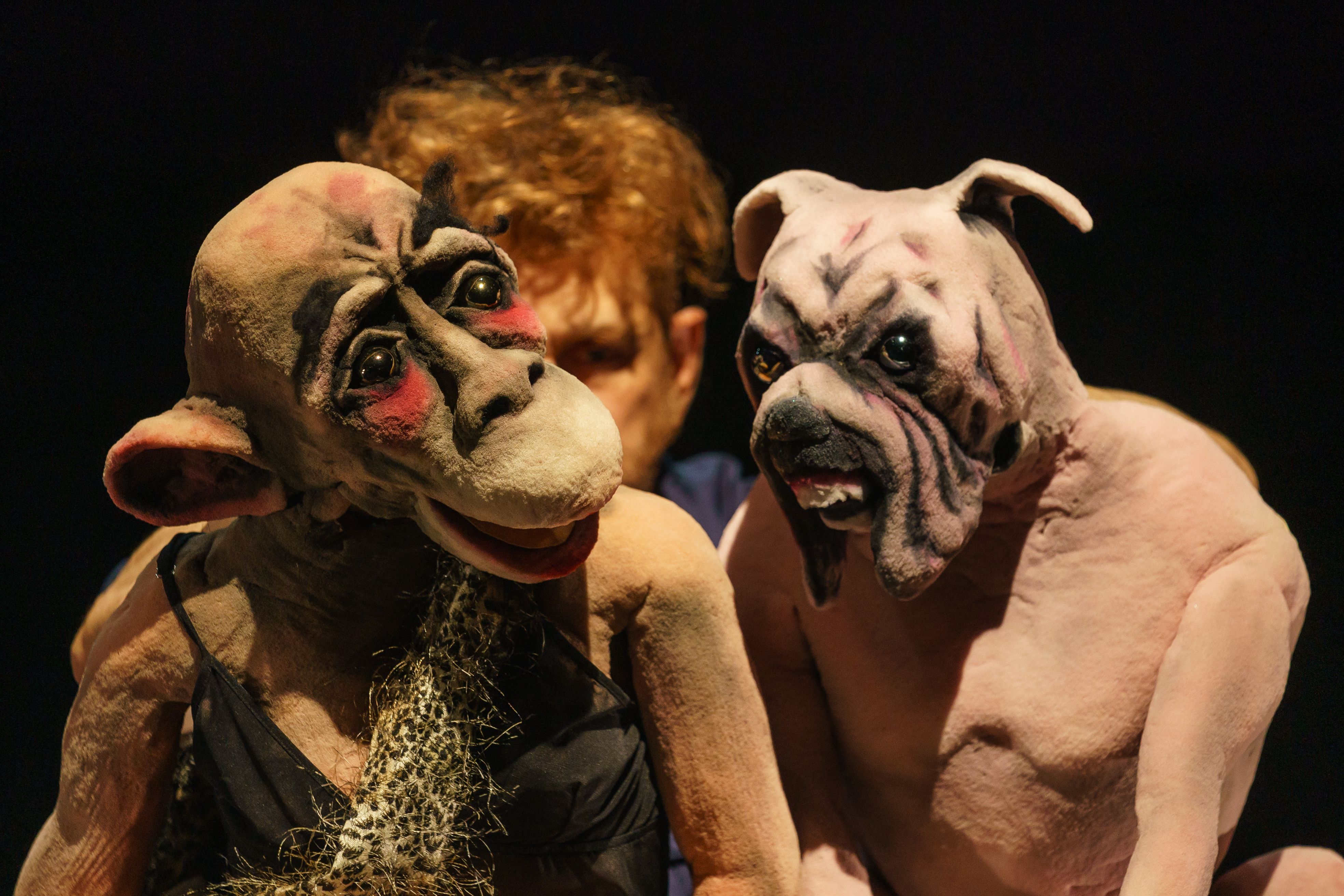 Bruce Marie is an experimental production by Duda Paiva Company in 2021. It takes a sarcastic and humorous approach to explore concepts, possibilities, and consequences of “transhumanism”.Humans hope to elevate their spirits, physical strength, capabilities, and talent with technologies, in order to over unwanted or unnecessary physical conditions. Muffin the monkey was implanted chips in a painful process. After the lab cleaner Bruce accidentally intrudes, though, the status quo is disrupted.