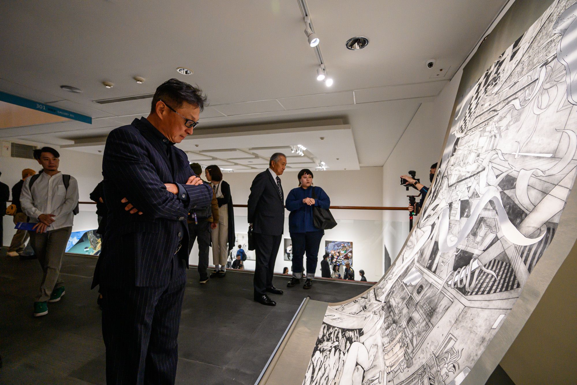 Tsai Shih-Ping, Commissioner of the Taipei City Department of Cultural Affairs, visited the exhibition with in-depth knowledge of each work. He emphasized the crucial role of corporate support in sustaining cultural initiatives: