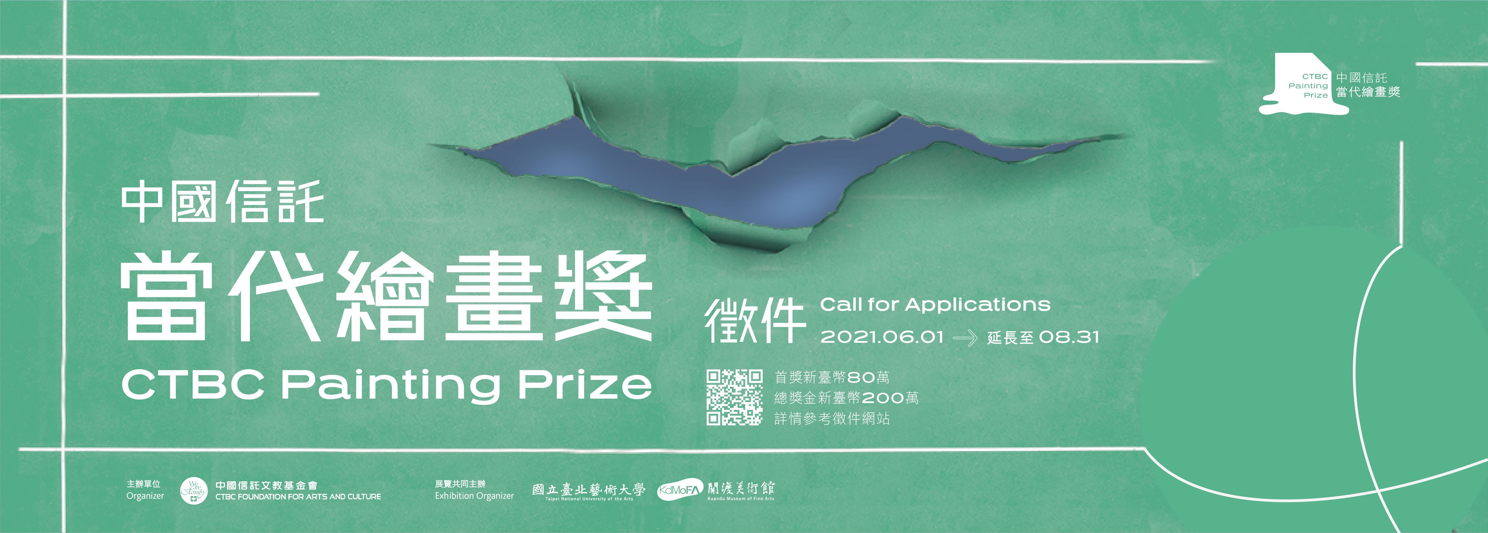 「中國信託當代繪畫獎」刷新該領域最高獎金紀錄,首獎得主一名可獲新臺幣80萬元、優選三名每名可獲新臺幣40萬元,本(6)月1日線上報名開放後,吸引眾多參賽者角逐,為鼓勵各路好手在疫情期間踴躍創作,徵件延長至民國(下同)110年8月31日18:00截止,中華民國國籍或持在臺永久居留證者、65至90年次的個人或團體創作者皆可報名,只要是108年後完成的單件或系列作品、從未在其他獎項獲獎的優秀作品,都歡迎一較高下!