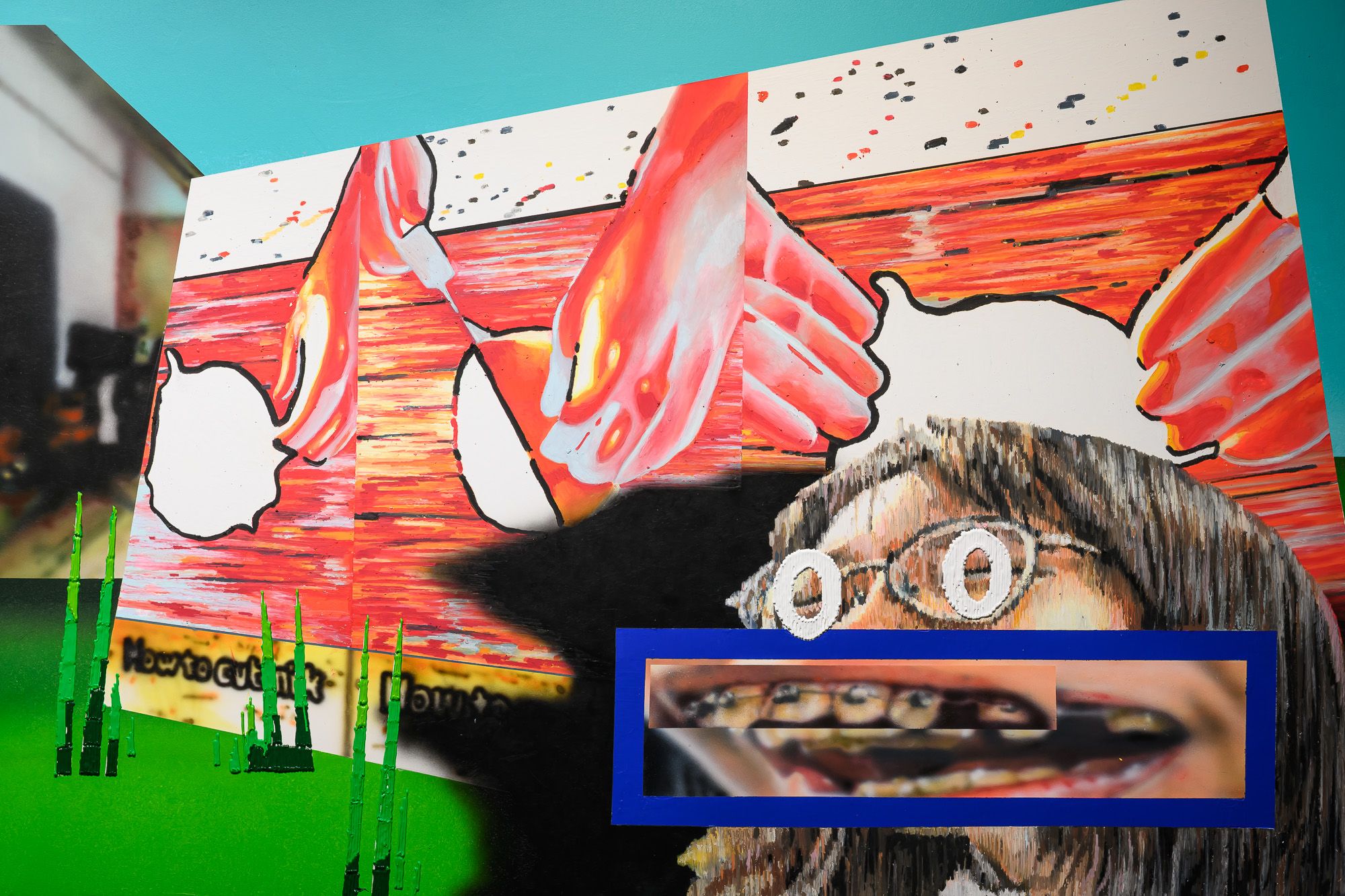 王柏欽〈新系統 Sample 6:How to Cut Milk〉作品自述節錄:作品關注當代觀看方式的演變,並探討在演算法主導下,影像如何成為被消費、被拼貼的素材,也如何在繪畫中重新獲得解釋與生成的可能。